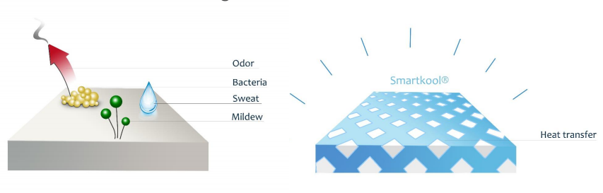 Smartkool® is a Spring registered trademark for cooling bedding product collection. By takng the best use of diverse cooling material, Smartkool® cooling products are featured with: